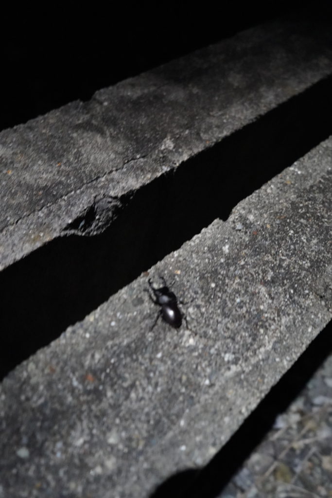 秋の気配が近づく道端で、一匹のコクワガタに出会いました。