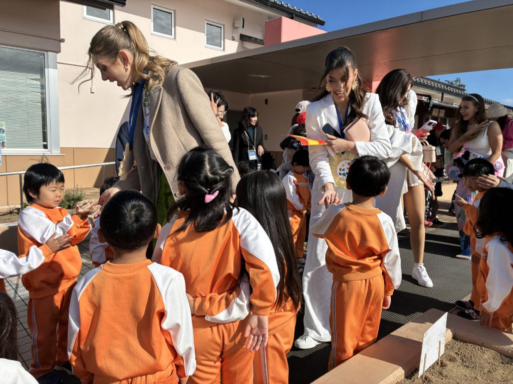 パラバルーン演技を楽しんだり、くだものカードを使ったゲームで子ども達と交流したりしました。子ども達もミス・インターナショナルとの触れ合いにおおはしゃぎです。